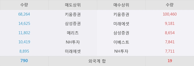 거래원 동향은 미래에셋, 삼성증권, NH투자 등이 매수 상위 목록에 나타나고 있다.