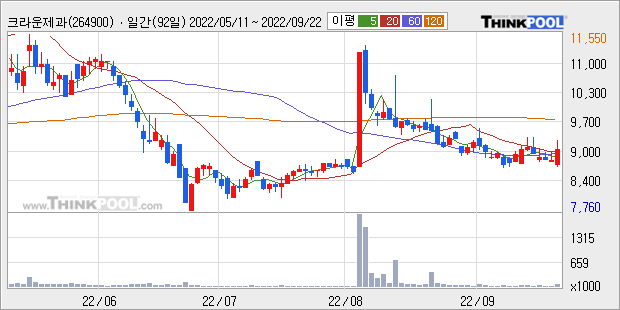 크라운제과는 2021년 매출액 3812억원과 영업이익 159억원을 기록했다. 전년대비 매출은 -0.1%, 영업이익은 -32.3% 각각 하락했다. 이 회사의 매출액 증감률과 영업이익 증감률은 각각 코스피 하위 19%, 하위 21%에 해당된다.
