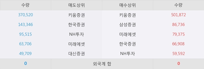 거래원 동향은 삼성증권, 미래에셋, NH투자 등이 매수 상위 목록에 나타나고 있다.