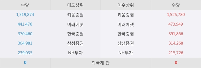 거래원 동향은 미래에셋, 삼성증권, NH투자 등이 매수 상위 목록에 나타나고 있다.
