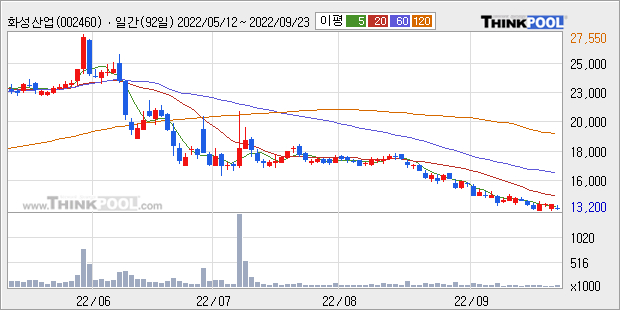 화성산업의 2021년 매출액은 전년대비 0.7% 늘어난 4222억원이고, 영업이익은 전년대비 -29.9% 줄어든 301억원을 기록했다. 이 회사의 매출액 증감률과 영업이익 증감률은 각각 코스피 하위 21%, 하위 22%에 해당된다.