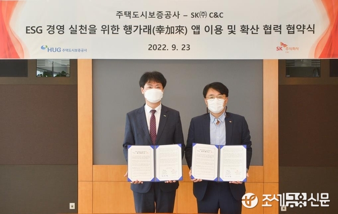 (조세금융신문=송기현 기자) 주택도시보증공사(HUG)는 26일 SK C&C와 환경·사회·지배구조(ESG) 경영 실천을 위한 '행가래'(幸加來) 앱 이용·확산 협약을 체결했다고 밝혔다.