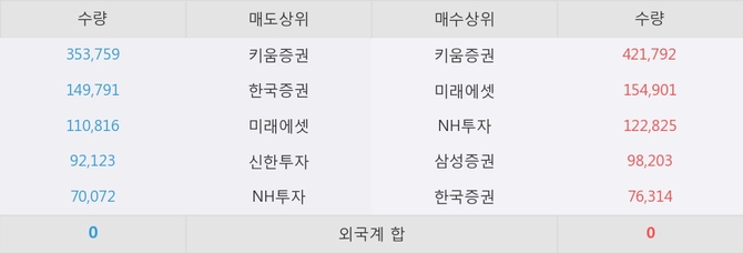 거래원 동향은 미래에셋, NH투자, 삼성증권 등이 매수 상위 목록에 나타나고 있다.