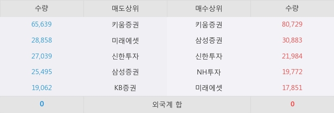 거래원 동향은 삼성증권, NH투자, 미래에셋 등이 매수 상위 목록에 나타나고 있다.