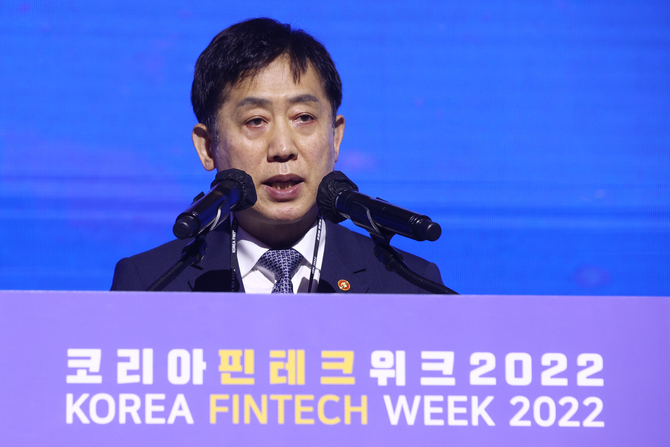 28일 김 위원장은 서울 소공동 롯데호텔에서 개최된 ‘코리아핀테크 위크 2022’ 개막식에 참석해 “최근 핀테크 업계가 플랫폼 기반의 빅테크 확장과 금융회사의 디지털 가속화라는 경쟁 구도에 직면해 있다. 핀테크 산업이 직면하는 현실이 급변하는 만큼 정부도 더욱 기민하게 대응하겠다”고 말했다.
