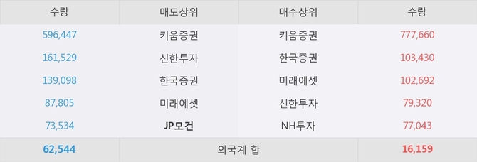 거래원 동향은 미래에셋, NH투자 등이 매수 상위 목록에 나타나고 있다. 한편, 매도 창구 상위에는 JP모건이 눈에 띄고 있다.