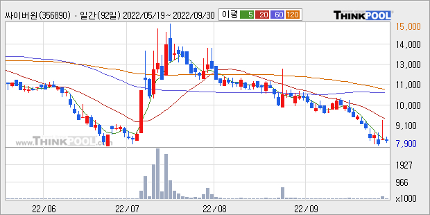 싸이버원은 2021년 매출액 222억원과 영업이익 17억원을 기록했다. 전년대비 매출은 7.7% 상승했고, 영업이익은 -22.5% 하락했다. 이 회사의 매출액 증감률과 영업이익 증감률은 각각 코스닥 하위 39%, 하위 31%에 해당된다.