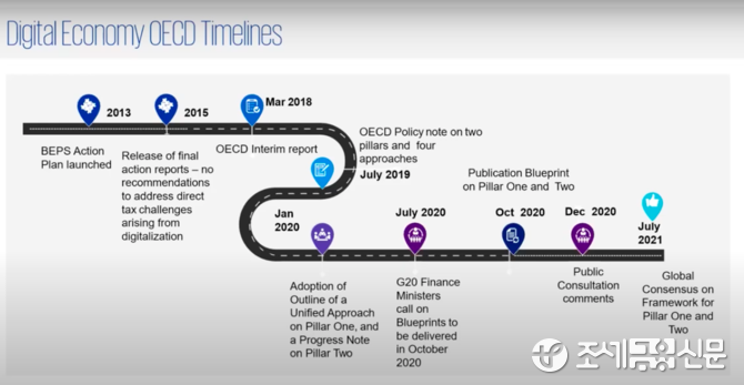 지난 2021년 10월8일 경제협력개발기구(OECD)와 선진20개국(G20) 포괄이행체계(IF)는 디지털세제에 대해 최종 합의, 두 개의 기둥(필라 1·2)을 공개했다.