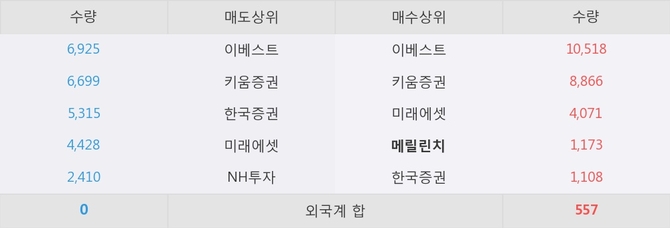 거래원 동향은 메릴린치, 미래에셋이 매수 상위 목록에 나타나고 있다.