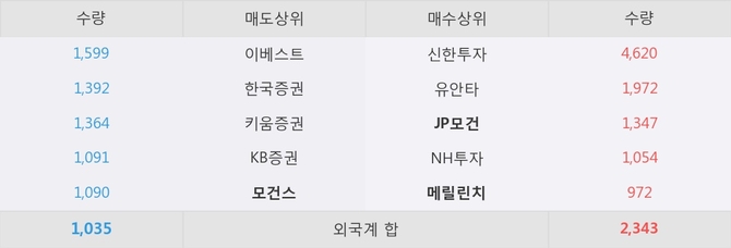 거래원 동향은 JP모건, 메릴린치, NH투자 등이 매수 상위 목록에 위치하고 있다. 한편, 매도 창구 상위에는 모건스가 눈에 띄고 있다.