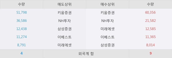 거래원 동향은 NH투자, 미래에셋, 삼성증권 등이 매수 상위 목록에 나타나고 있다.