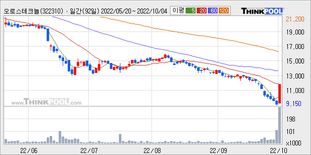 [그래프]오로스테크놀로지 일봉 차트