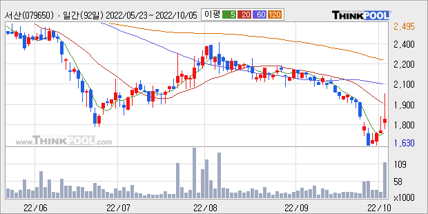 서산의 2021년 매출액은 전년대비 41.7% 늘어난 561억원이고, 영업이익은 흑자전환해서 45억원을 기록했다. 이 회사의 매출액 증감률과 영업이익 증감률은 각각 코스닥 상위 17%, 상위 17%에 해당된다.