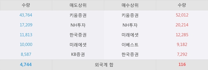 거래원 동향은 NH투자, 미래에셋 등이 매수 상위 목록에 나타나고 있다.