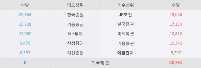 거래원 동향은 JP모건, 메릴린치, 미래에셋 등이 매수 상위 목록에 위치하고 있다.