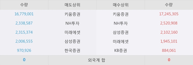 거래원 동향은 NH투자, 삼성증권, 미래에셋 등이 매수 상위 목록에 나타나고 있다.