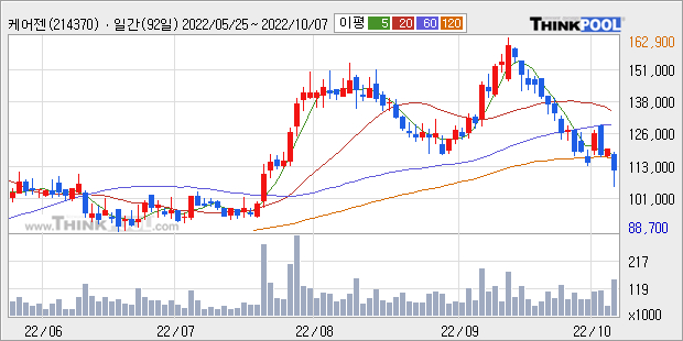 케어젠의 2021년 매출액은 591억으로 전년대비 -2.0% 하락했고, 영업이익 역시 282억으로 전년대비 -11.8% 하락했다. 이 회사의 매출액 증감률과 영업이익 증감률은 각각 코스닥 하위 25%, 하위 35%에 해당된다.