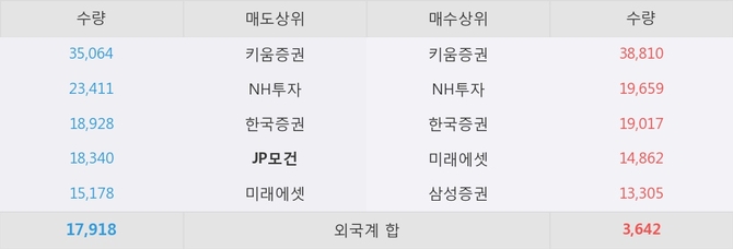 거래원 동향은 NH투자, 미래에셋, 삼성증권 등이 매수 상위 목록에 나타나고 있다. 한편, 매도 창구 상위에는 JP모건이 눈에 띄고 있다.