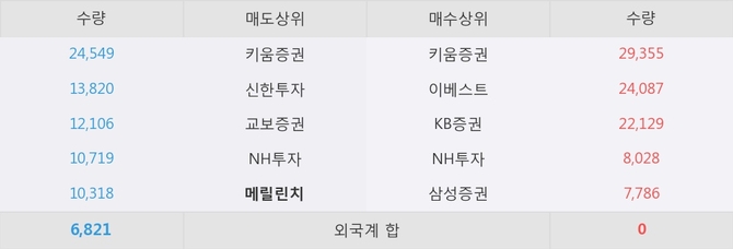 거래원 동향은 NH투자, 삼성증권 등이 매수 상위 목록에 나타나고 있다. 한편, 매도 창구 상위에는 메릴린치가 눈에 띄고 있다.