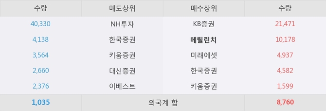 이 시각 주요 거래원은 NH투자, 한국증권, 키움증권 등이 매도 상위 창구에 자리하고 있다. 한편, 매수 창구 상위에는 메릴린치가 눈에 띄고 있다.