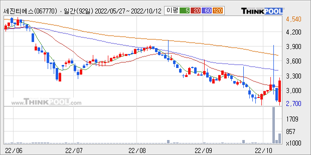 세진티에스의 2021년 매출액은 270억으로 전년대비 -17.4% 하락했고, 영업이익 역시 21억으로 전년대비 -54.0% 하락했다. 이 회사의 매출액 증감률과 영업이익 증감률은 각각 코스닥 하위 12%, 하위 22%에 해당된다.