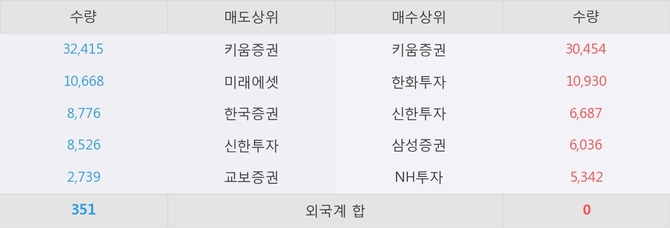 거래원 동향은 삼성증권, NH투자 등이 매수 상위 목록에 나타나고 있다.