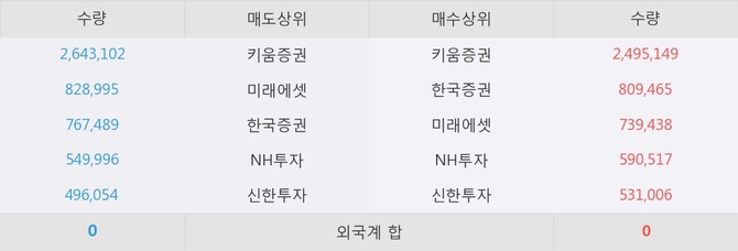 아직까지 외국계 증권사 창구를 통한 매매는 발생하지 않고 있다. 그리고 이 시간 한국증권이 매수창구상위에 올라있는 종목은 이 종목 이외에도 현대건설우, 금양 등이 있다.