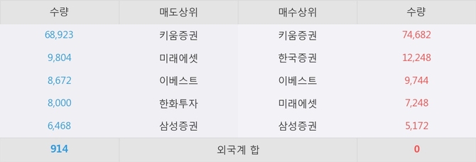 거래원 동향은 미래에셋, 삼성증권 등이 매수 상위 목록에 나타나고 있다.