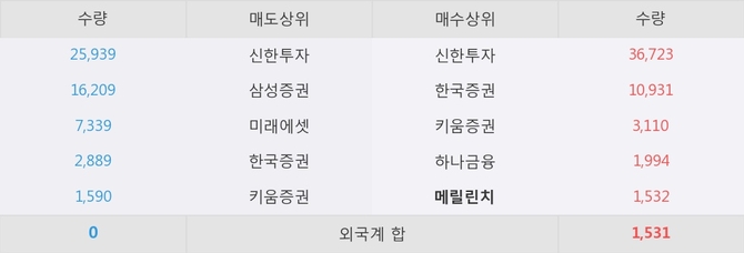 거래원 동향은 메릴린치, 하나금융이 매수 상위 목록에 나타나고 있다.