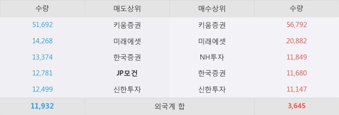 거래원 동향은 미래에셋, NH투자 등이 매수 상위 목록에 나타나고 있다. 한편, 매도 창구 상위에는 JP모건이 눈에 띄고 있다.