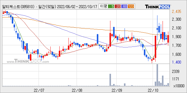 알티캐스트는 2021년 매출액 362억원과 영업이익 28억원을 기록했다. 전년대비 매출은 -18.7% 하락했고, 영업이익은 흑자전환했다. 이 회사의 매출액 증감률과 영업이익 증감률은 각각 코스닥 하위 11%, 상위 8%에 해당된다.