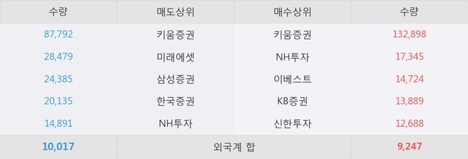이 시각 주요 거래원은 NH투자, 키움증권, 이베스트 등이 매수 상위 창구에 자리하고 있다.
