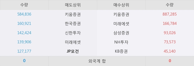 거래원 동향은 미래에셋, 삼성증권, NH투자 등이 매수 상위 목록에 나타나고 있다. 한편, 매도 창구 상위에는 JP모건이 눈에 띄고 있다.