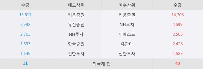 이 시각 주요 거래원은 NH투자, 키움증권, 이베스트 등이 매수 상위 창구에 자리하고 있다.