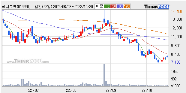 에너토크의 2021년 매출액은 전년대비 -1.6% 줄어든 226억원이고, 영업이익은 전년대비 283.8% 늘어난 14억원을 기록했다. 이 회사의 매출액 증감률과 영업이익 증감률은 각각 코스닥 하위 26%, 상위 11%에 해당된다.