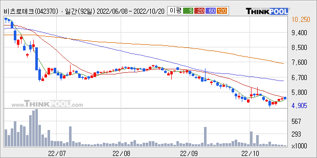 비츠로테크는 2021년 매출액 3238억원과 영업이익 261억원을 기록했다. 전년대비 매출은 5.3% 상승했고, 영업이익은 -21.6% 하락했다. 이 회사의 매출액 증감률과 영업이익 증감률은 각각 코스닥 하위 34%, 하위 32%에 해당된다.