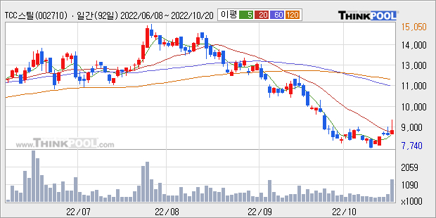 TCC스틸의 2021년 매출액은 5366억으로 전년대비 24.3% 상승했고, 영업이익 또한 256억으로 전년대비 2,539.2% 상승했다. 이 회사의 매출액 증감률과 영업이익 증감률은 각각 코스피 상위 29%, 상위 2%에 해당된다.