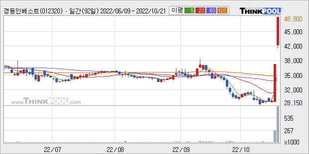 경동인베스트의 2021년 매출액은 전년대비 -3.9% 줄어든 2985억원이고, 영업이익 역시 전년대비 -28.7% 줄어든 139억원을 기록했다. 이 회사의 매출액 증감률과 영업이익 증감률은 각각 코스피 하위 14%, 하위 22%에 해당된다.