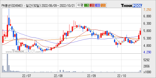 PN풍년은 2021년 매출액 582억원과 영업이익 24억원을 기록했다. 전년대비 매출은 0.9%, 영업이익은 343.6% 각각 상승했다. 이 회사의 매출액 증감률과 영업이익 증감률은 각각 코스닥 하위 29%, 상위 7%에 해당된다.
