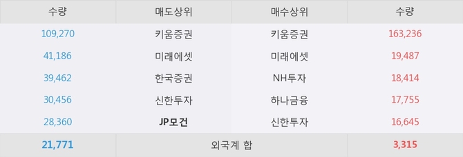 거래원 동향은 미래에셋, NH투자, 하나금융 등이 매수 상위 목록에 나타나고 있다. 한편, 매도 창구 상위에는 JP모건이 눈에 띄고 있다.