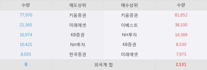 거래원 동향은 NH투자, 미래에셋 등이 매수 상위 목록에 나타나고 있다.
