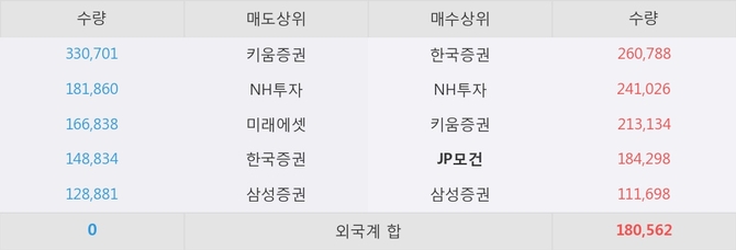 거래원 동향은 JP모건, NH투자, 삼성증권 등이 매수 상위 목록에 나타나고 있다.