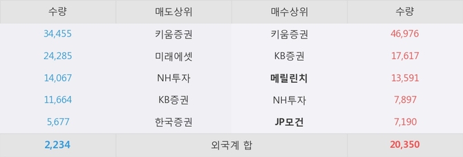 거래원 동향은 메릴린치, JP모건, NH투자 등이 매수 상위 목록에 위치하고 있다.