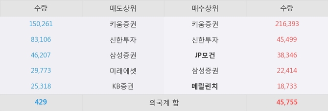 거래원 동향은 JP모건, 메릴린치, 삼성증권 등이 매수 상위 목록에 위치하고 있다.