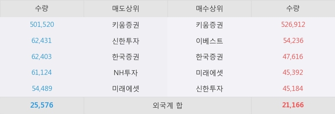 이 시각 주요 거래원은 미래에셋, 키움증권, 이베스트 등이 매수 상위 창구에 자리하고 있다.