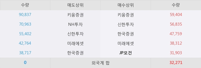 거래원 동향은 JP모건, 미래에셋이 매수 상위 목록에 나타나고 있다.