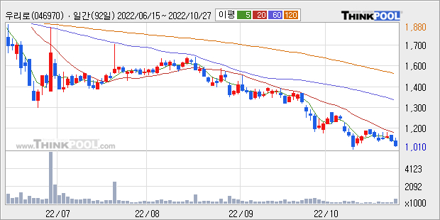 우리로는 2021년 매출액 1074억원과 영업이익 38억원을 기록했다. 전년대비 매출은 -3.2% 하락했고, 영업이익은 흑자전환했다. 이 회사의 매출액 증감률과 영업이익 증감률은 각각 코스닥 하위 23%, 상위 10%에 해당된다.