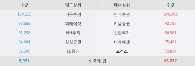 거래원 동향은 모건스, 미래에셋이 매수 상위 목록에 나타나고 있다.