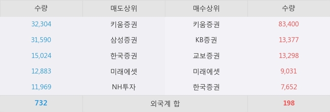 이 시각 주요 거래원은 미래에셋, 키움증권, KB증권 등이 매수 상위 창구에 자리하고 있다.