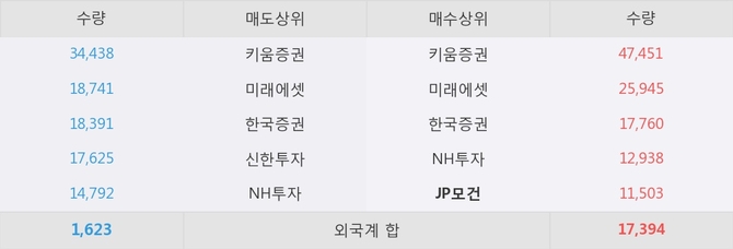 거래원 동향은 JP모건, 미래에셋, NH투자 등이 매수 상위 목록에 나타나고 있다.